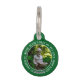 "St Francis of Assisi bless and keep my pet safe" pet id tag is customizable with your pets name. The front features your pet name encircled with a faux crystal bedazzled circle. Change the background color from green to any color of your liking. There's room to add more info if you want. The back features a statue image of St Francis that you can change and replace with your own photo or pet information. The cute quote is also editable. A wonderful tag for any pet in both large and smaller size. Great for new pet owners. Attach to collars, pet bags, travel crates or other pet gear. Square photos work best, or just make sure the image of you pet is centered in the photo.