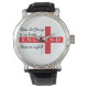 Uhr, Vintage Männeruhr mit schwarzem Lederarmband