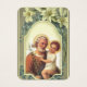 Erinnern Sie sich an Ihre Lieben im Gebet mit dieser personalisierten, traditionell katholischen Gedenkkarte des heiligen Josef, die den Jesus-Säugling mit einem Lilie- und Blumenspray als Grenze hält.