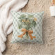This St Patrick's Day pillow features a watercolor four leaf clover arrangement tied with and orange bow and a coordinating green and white gingham background on the front and on the back.