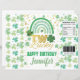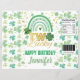 Thema: St Patrick's Day Rainbow Kleeblatt. Gelegenheiten: Geburtstagsparty für Kinder. Stil: Niedlich, elegant, Boho. Farben: Grün, Gold, Weiß. Grafiken: Regenbogen, Wasserfarbe, False Gold.