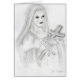 Eine schöne Schwarzweiss-Bleistiftskizze eines gekleideten Heiligen Therese, die ein schroffes Kreuz und Blumen in ihren Händen hält.
