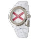 Eine wunderbare Damenuhr mit weißem Armband und grün-weiß-kariertem Ziffernblatt. Trägt sich ganz fabelhaft. Exzellenter Druck, sehr klare Farben. Schönes Design.