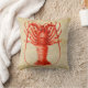 Ein schönes, ausführliches Vintages Artzeichnen eines stacheligen Hummers in rot-orange wird auf einem antiken Pergamenthintergrund für ein einzigartiges themed nautischkissen gedruckt, das parfect für ein Strandhaus oder einen Küsteninnenraum ist.