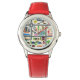 Kinderuhr aus Edelstahl mit rotem Lederarmband