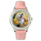 Kinderuhr aus Edelstahl mit rosa Lederarmband