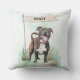 Add cozy charm to your home with this Staffordshire Bull Terrier throw pillow featuring a watercolor design and customizable name flag. Ideal for breed lovers.