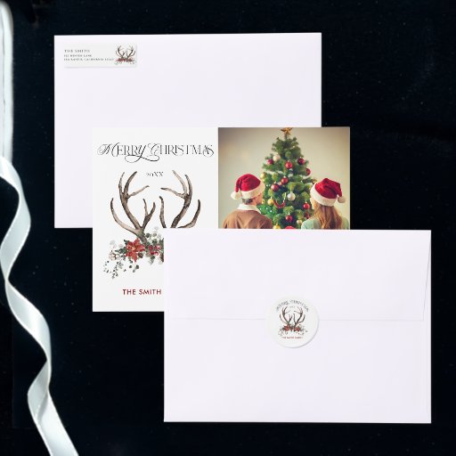 Watercolor Botanical Stag Merry Christmas Designt von Katsiaryna Lukyanava