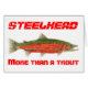Entwurf u. Künstler Thom der Grafik von Natur aus, der von einem Laichen Glace ist, färbt Stahlkopfforelle getan für das Graubär-Hechel-Fliegen-Geschäft von Missoula, Montana.