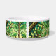 Stained glass-inspired bowl with green leaves and vines in vibrant colors, conveying an artistic, nature-themed design. Front and side views shown.
