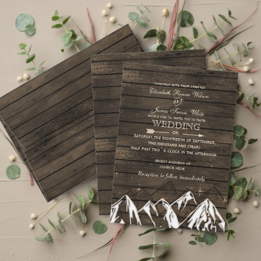 Barn Wood mountain scene wedding invitations SetDesignt von Maria G