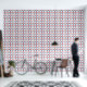 Red, silver and blue big 2 D stars against white wallpaper.