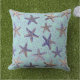 Starfish im Sand Aquamarinen Kissen. Schick aquamarin, lila, taupe, graue und braune Seesterne in flachem Wasser in 2 verschiedenen Größen. Größer vorne und kleiner hinten. Outdoor, Indoor, Ozean, Küste, Wassersport, Beach House inspiriert Zuhause, und unterhaltsame Dekoration.