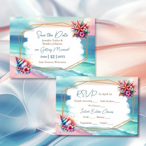 Pink Blue and Gold Coastal Seahorse Beachy WeddingDesignt von Hilton Lisa