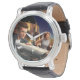 Uhr, Vintage Männeruhr mit schwarzem Lederarmband