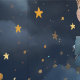 Stellen Sie sich einen schönen Sternenhimmel vor, vor einem dunkelblauen Hintergrund, bei dem Kinder auf den Wolken sitzen und ein Buch lesen. Das perfekte Hintergrundbild für Ihr Kind