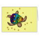 Die Vorderseite der Karte ist mit einer Schildkröte mit Regenbogen-Muschel und Sternen mit gelbem Hintergrund dekoriert
