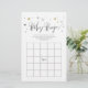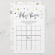 Diese Babydusche-Spielkarte bietet einen modernen Schriftart auf weißem Hintergrund mit grauen und goldenen Sternen, perfekt für ein Geschlecht enthüllen Babydusche!