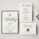 STATELY CALLIGRAPHY, The Essentials, wedding details information template enclosure card. Features, onyx black and soft ecru typography and background colors.