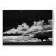 Am frühen Morgen Schwarz-Weiß eines Bison fütternd in der Nähe eines Dampfschloks im Yellowstone Park.