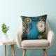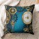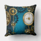 Türkis, strukturiert, Steampunkhintergrund mit Messing- und Goldgetrieben, Silberschlüssel und Uhr. Steampunkstil.
