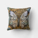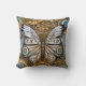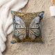Das ist ein Steampunk-Stilkissen mit einem Schmetterling mit Vintagen Uhren und den inneren Gängen von Uhren in hellblauen und braunen Tönen.