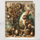 Doppelseitiges Scrapbook-Papier mit steampunkter thematischer Ephemie aus Osterhasen, Eiern und Uhrwerken, um Ihnen bei der Erstellung von Urlaubspapieren zu helfen. Perfekt für alle Arten von Papierkrafträdern von der Scrapbooking bis hin zur Junk Journaling.