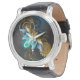 Uhr, Vintage Männeruhr mit schwarzem Lederarmband