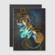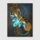 Steampunk glänzt mit blauen, transparenten Flügeln und grüner Glühbirne auf abgenutztem, braunem, strukturiertem Hintergrund. Steampunkstil.