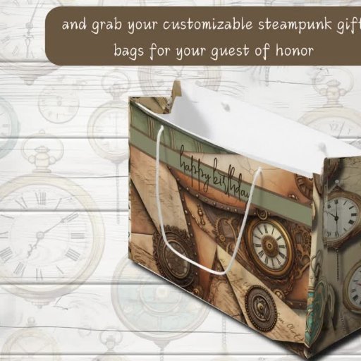 Passen Sie diese Collage Ihrer Lieblings-Steampunk-Themen an. An der Vorderseite dieser Party Einladung befindet sich ein Steampunkthut aus Kupfer und Aqua, eine Steampunkbrille, die in der unteren links Ecke der Einladung versteckt ist, sowie ein Dampfmotorrad und eine Kompassuhr aus Gold. Auf der Rückseite der Einladung befinden sich Aqua-, Braun- und Grünstreifen.