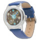Kinderuhr aus Edelstahl mit blauem Lederarmband