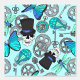 Steampunk Skulls and Gears Pattern Blau Tapete