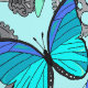 Gemusterte Wallpaper aus Steampunken mit Schädeln mit Oberhüten, Zahnrädern, Zahnrädern, Schmetterlingen, Libellen und Heißluftballons in Blau- und Grautönen