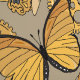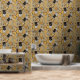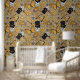 Gemusterte Wallpaper aus Steampunken mit Schädeln mit Oberhüten, Zahnrädern, Zahnrädern, Schmetterlingen, Libellen und Heißluftballons in Braun- und Goldtönen