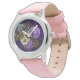 Kinderuhr aus Edelstahl mit rosa Lederarmband