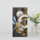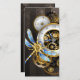 Antiquitätendiale mit Gold- und Messinggetrieben, mit mechanischer Libelle auf braunem, gestreiftem Hintergrund dekoriert. Steampunk.
