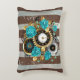 Steampunkuhr und türkisfarbene Rose auf Streifen Dekokissen