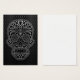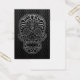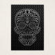 Dieses symmetrische Design des Zuckerschädels ist mit aufwändig hellgrünen Wirbel und Punktmustern dekoriert. Die Schädelaugen bestehen aus zwei kreisförmigen Blume und in der Stirn befindet sich ein Fünf-Punkte-Stern. Ein Schatten fällt auf den Hintergrund der Stahlgitter und verleiht dem Muster ein industrielles Aussehen. Dieser stilistische Zuckerschädel ist eine einzigartige Interpretation dieses Tages des Toten Symbols.