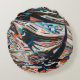 Steg mit braunem und blauem Holzschiff Rundes Kissen