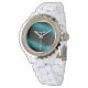 Eine wunderbare Damenuhr mit weißem Armband und grün-weiß-kariertem Ziffernblatt. Trägt sich ganz fabelhaft. Exzellenter Druck, sehr klare Farben. Schönes Design.