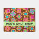 Willkommene Kunden zu Ihrem Steppdeckenspeicher oder Geschäft mit dieser bunten Türmatte personalisiert mit Ihrem Handelsnamen. Sie können den Namen oder andere Wörter für Ihren Türeingang leicht besonders anfertigen. Diese Türmatte ist für die Förderung Ihrer steppenden Liebe des Steppdeckenpatchworkgeschäfts und -show groß und ist auch für eine quild oder Steppdeckenklasse groß. Der kundengerechte Handelsname ist auf einem hellgrünen Streifen und kann zu einem anderen Wort oder zu Namen leicht besonders angefertigt werden. Diese ursprüngliche Steppdeckenkunst kombiniert Lieblingssteppdeckenblöcke wie Blockhaus, Sterne und Pinwheels plus einzigartige Blöcke, um einen Steppdeckenentwurf mit den vibrierenden und dynamischen Farben auf einem warmen braunen Hintergrund zu bilden. Die Blockfarben sind Grünes, Gelbes, rosa, Orange, Rotes und Türkisblau. Kleine gelbe Blumen sind im Hintergrund zwischen den Blöcken. Völlig kundengerechte Steppdeckenkunst ist vom Gewebe- und Steppdeckendesigner Phyllis Dobbs und ist einfach, es Ihre Selbst zu machen.
