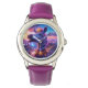 Uhr, Kinderuhr aus Edelstahluhr mit lila Lederarmband