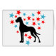 Dogge vor Herz aus Sternen in zwei Farben, hier hellblau und rot - Große Däne und ein Herz von Sternen.