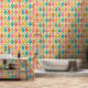 Es handelt sich um klassische moderne, farbenfrohe Sternexplosionen auf Retro-Diamanten in Rosa, Orange, Grün, aquamarin und Gelb. Es ist ein großartiges Hintergrundbild für jeden, der die Atomära im Retro-Stil entwirft.