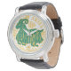 Auf einer Armbanduhr zeichnen sich die Sterne in Grün und Weiß ab.