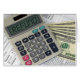 Rechner mit Rückerstattungstext und Geld auf Einkommensteuerformularen