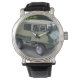 Uhr, Vintage Männeruhr mit schwarzem Lederarmband