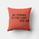 Rot, Polyester, quadratisches Kissen mit Schrift Zitat und illustrierten Fischen. Das Zitat stammt aus dem biblischen Buch der Ephesianer. Der Fisch ist das geheime Symbol der frühen Christen, die sich identifizieren und sich ohne Verfolgung sammeln.