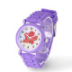 Uhr, Kinderuhr aus Edelstahluhr mit lila Lederarmband