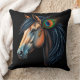 Digitale Darstellung eines majestätischen Pferdes mit einer detaillierten Mane und einer lebendigen Pfauenfeder vor schwarzem Hintergrund, die königliche Eleganz und künstlerische Kreativität zeigt.